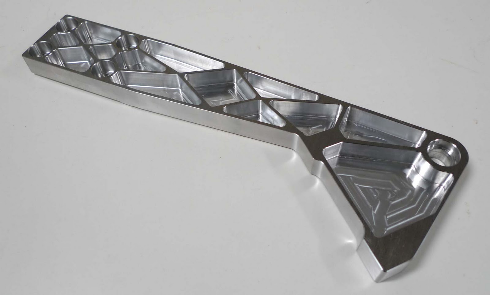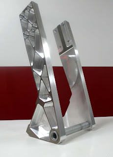 Mirroring the toolpaths allowed me to create the 2nd part with a minimum of hassle resulting in a very stiff looking assembly:  This design also makes use of the latest radial mount Brembo billet calipers for the ultimate in progressive braking feel.