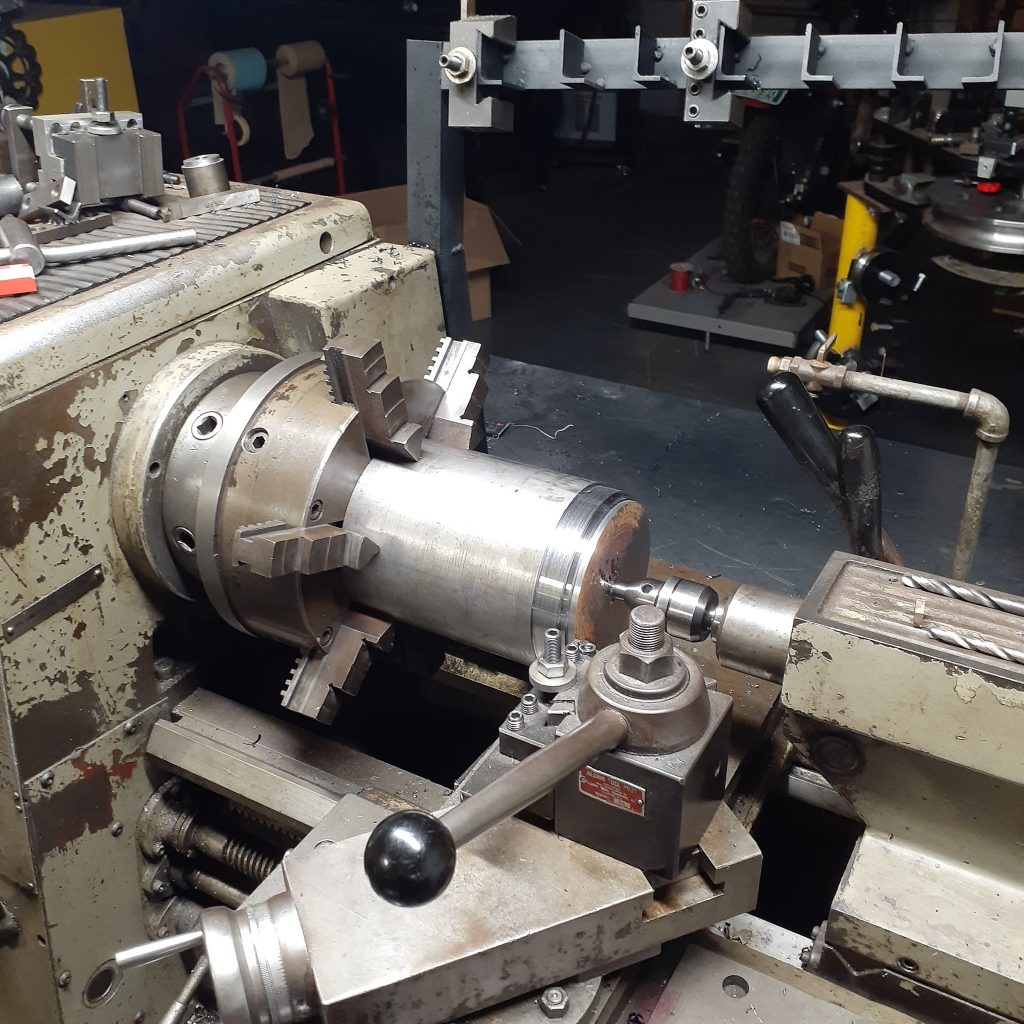 So I opened up his 6 jaw chuck, put a small center in the hanging end, and started turning. That picture is after about 15 minutes of machining. I’ve been used to so much aluminum machining, where it literally is like a hot knife through butter, that I seriously underestimated the time that would be needed to manually turn these parts down. Carbide inserts are nice, but unless you could flood them with coolant and have a super rigid setup, they cannot be used to anywhere near their potential.