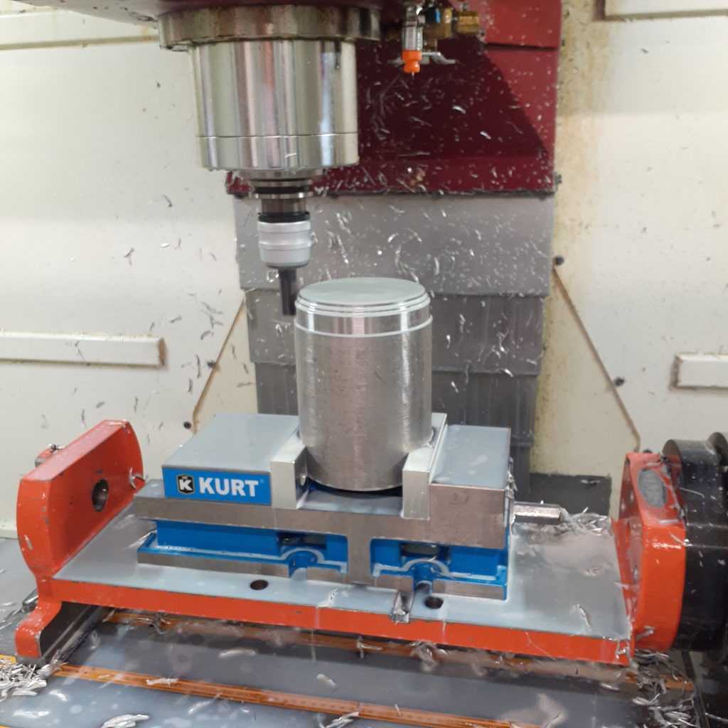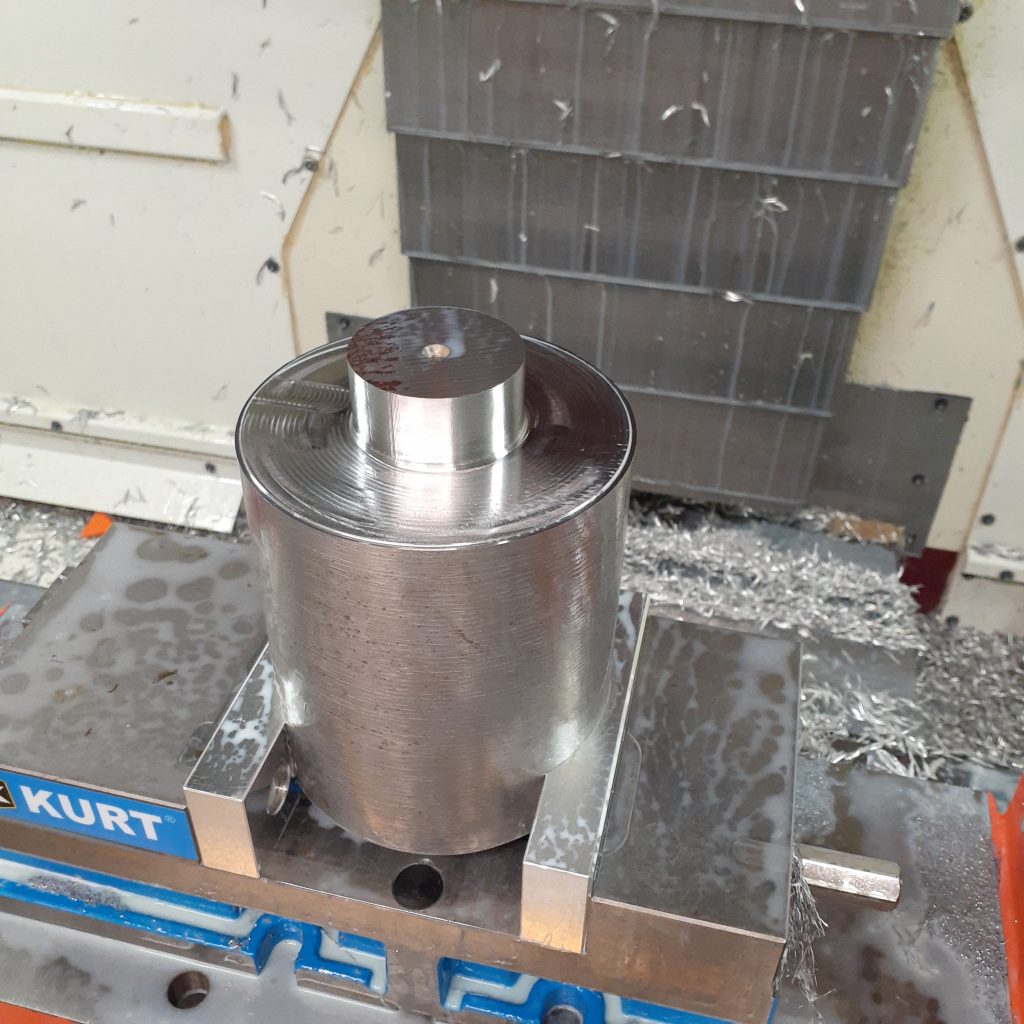 My second option was to machine some soft jaws for the mill vise and hold it upright to profile cut the spigot. This was my second choice because the large overhang of semi-hard steel would present large cutting forces. In the end, there was no cause for concern as the vise approach, even with it mounted high my rotary trunnion table from Martin Trunnion Table.