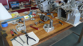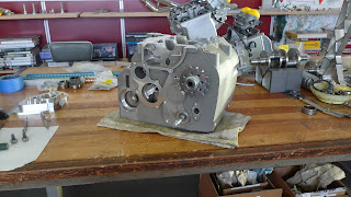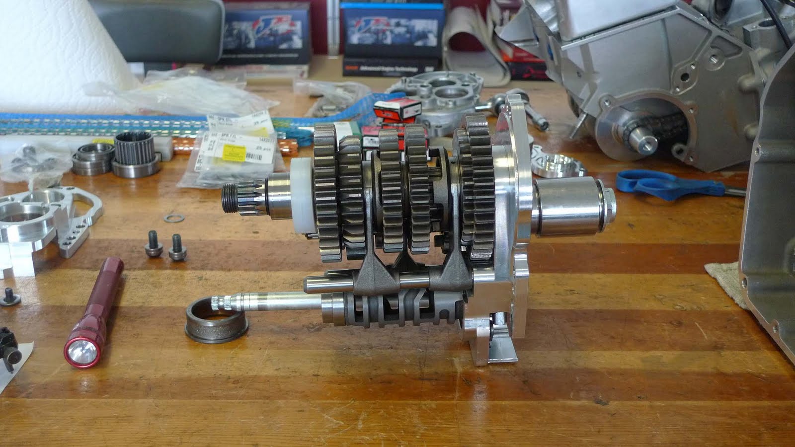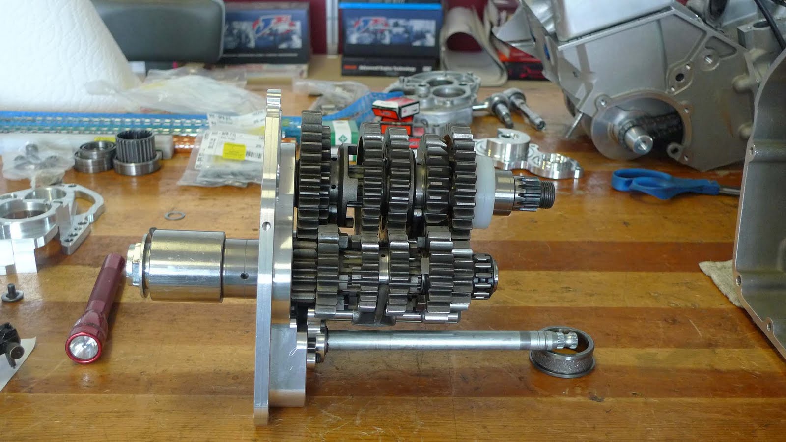 After the hustle of the past few days it was nice to get a quiet day at the shop. I was able to successfully assemble and test the complete transmission and shifter assembly. After doing a couple of simple manual 2nd operations on the part (deburring, threaded cross oil hole passage) I pressed the bearings in and assembled and carefully checked the drum and shifter fork alignments to assure smooth shifting performance.