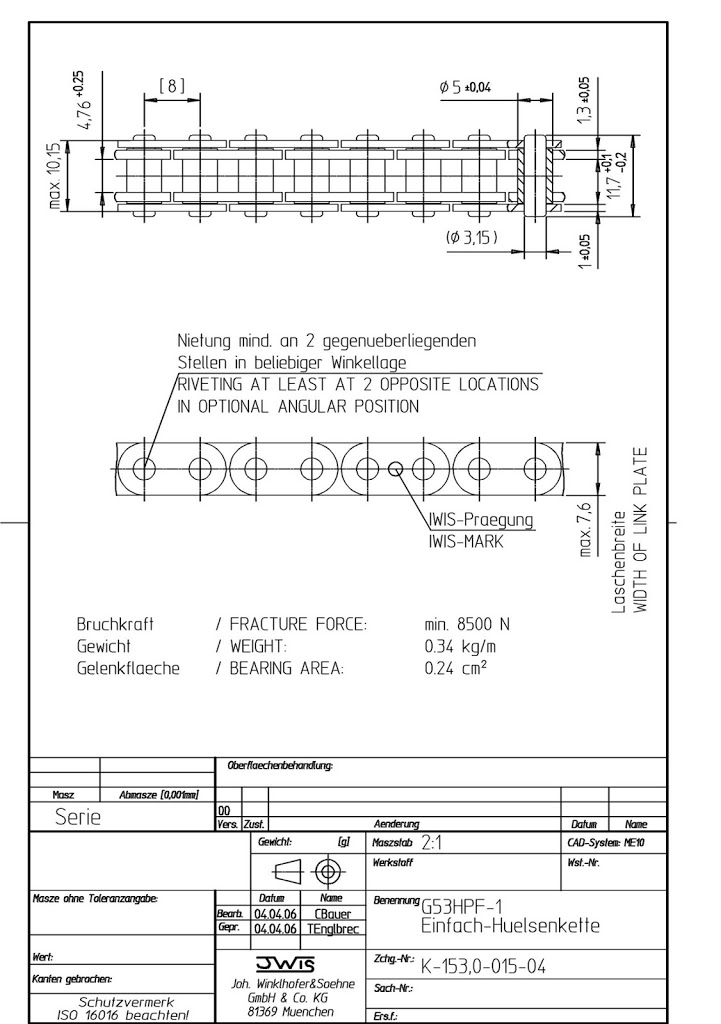 - custom length high performance roller cam chain from IWIS