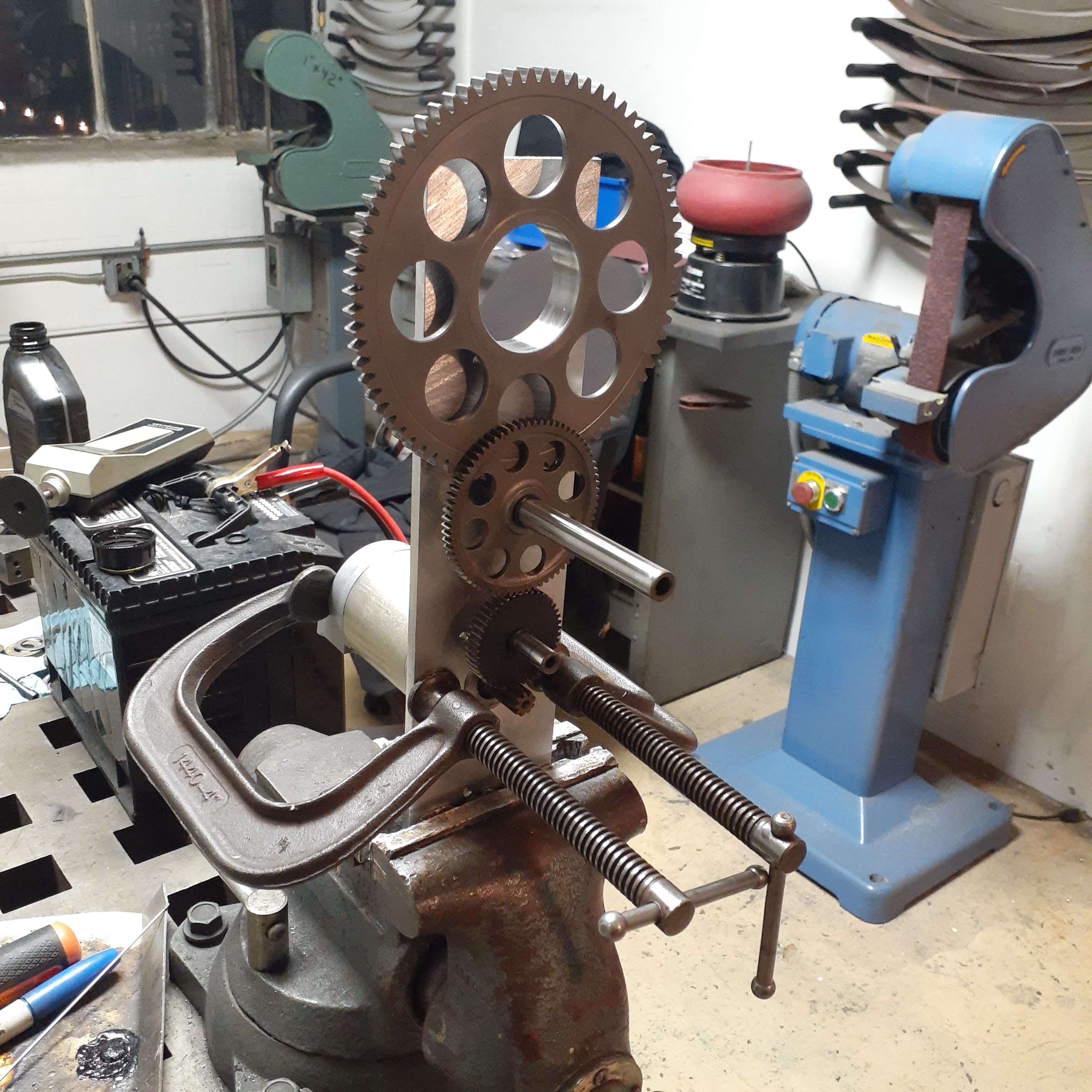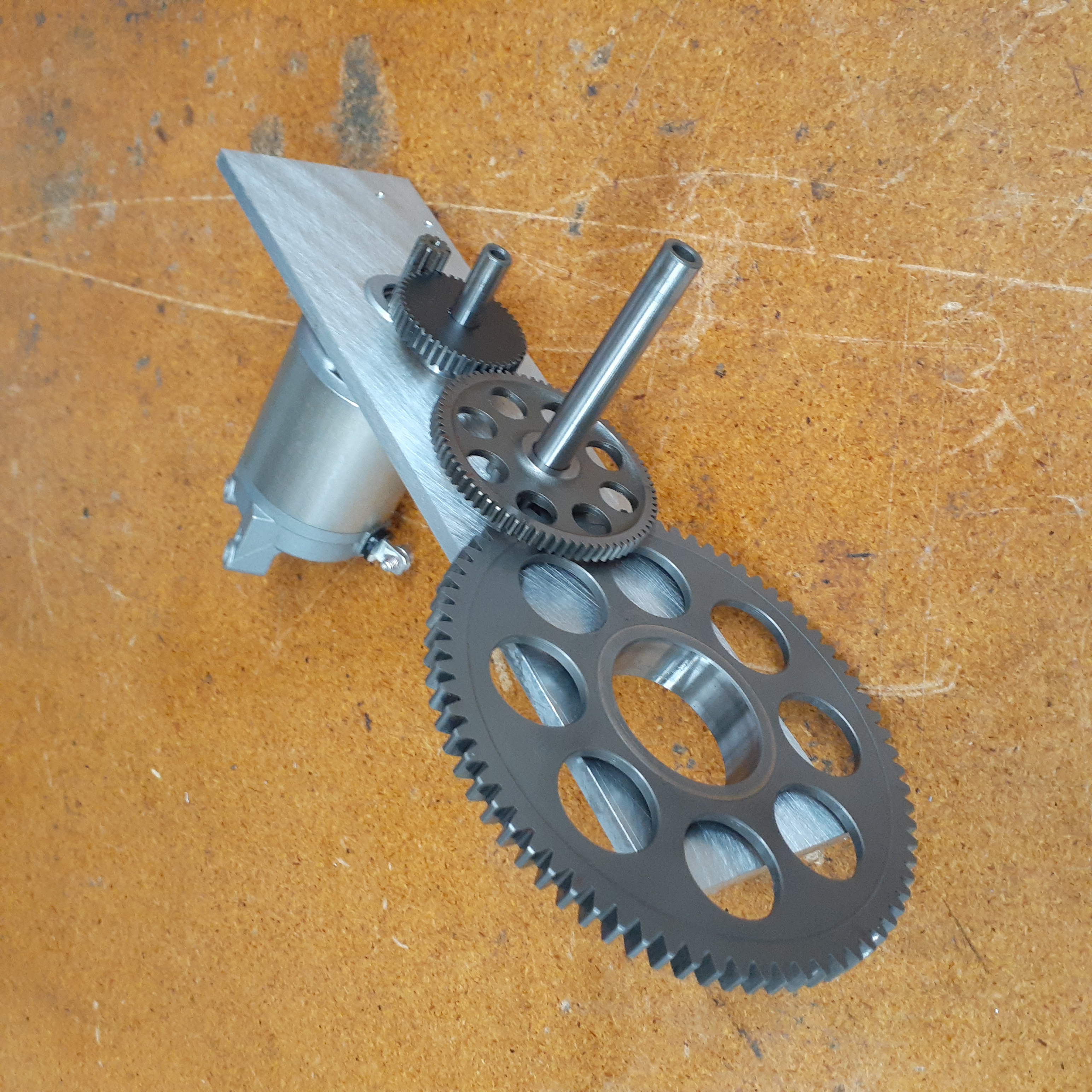 A few quick measurements and version two was successful.  All of the gear meshes were within tolerance and there were no unusual noises when a demo run was done with the starter motor and a small car battery.