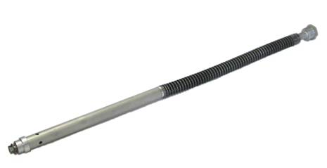 The complete assembly with a spring of choice installed. The unit drops right into the existing fork tubes with no modifications required. You don’t even need to take the forks off the bike!! The original parts can be reinstalled at any time. |