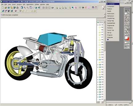 As with all projects at Cosentino Engineering, the Rotacular began with a clean sheet CAD design. Intensive research into the equations determining motorcycle dynamic behavior generated a skeleton over which to place the components of the vehicle |