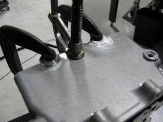 Head Weld Test. The 2 piece cap is to insure the internal separation from the oil and cooling passages remains separated.