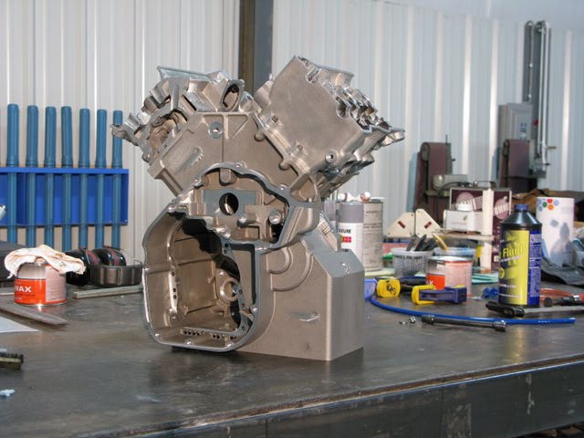The overall engine assembly is very short front to rear to enable a long swingarm in a short wheelbase. The resultant slight additional height compared to a normal I4 is easily accommodated by the unique chassis needed for the Hossack-style front suspension.