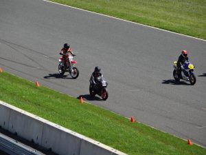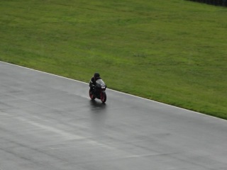 When the flag dropped I proceeded to spin the rear tire and almost drive off into the grass. Not the best move but I didn’t dump it yet! I recovered, wiped off my faceshield and started to tiptoe around the track. The rain only got worse but I started to get into a groove. Not a smooth groove, but a slipping, sliding, moving all around groove. It was enough to bring a little of my confidence back. Little by little I started going faster. Every now and then I passed someone.
