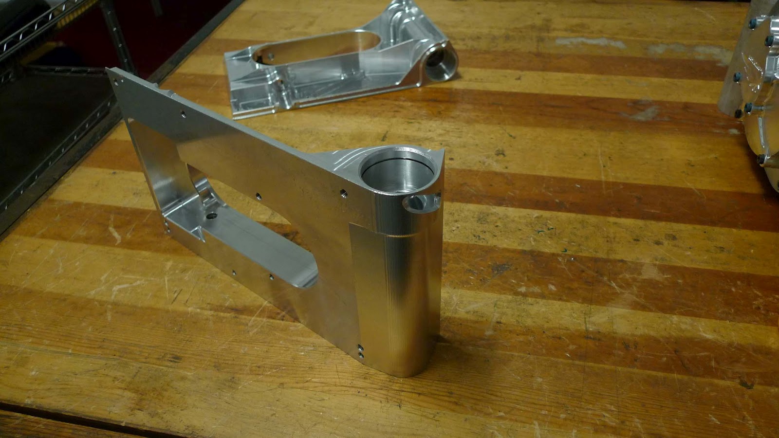I’ll have Scott Kolb weld this mistake up and then remachine the bore to size. Normally there would be a concern about the welded material in a stressed area losing its temper and strength but this part will be heat treated after the entire swingarm is welded so it will then regain its full T6 temper strength.