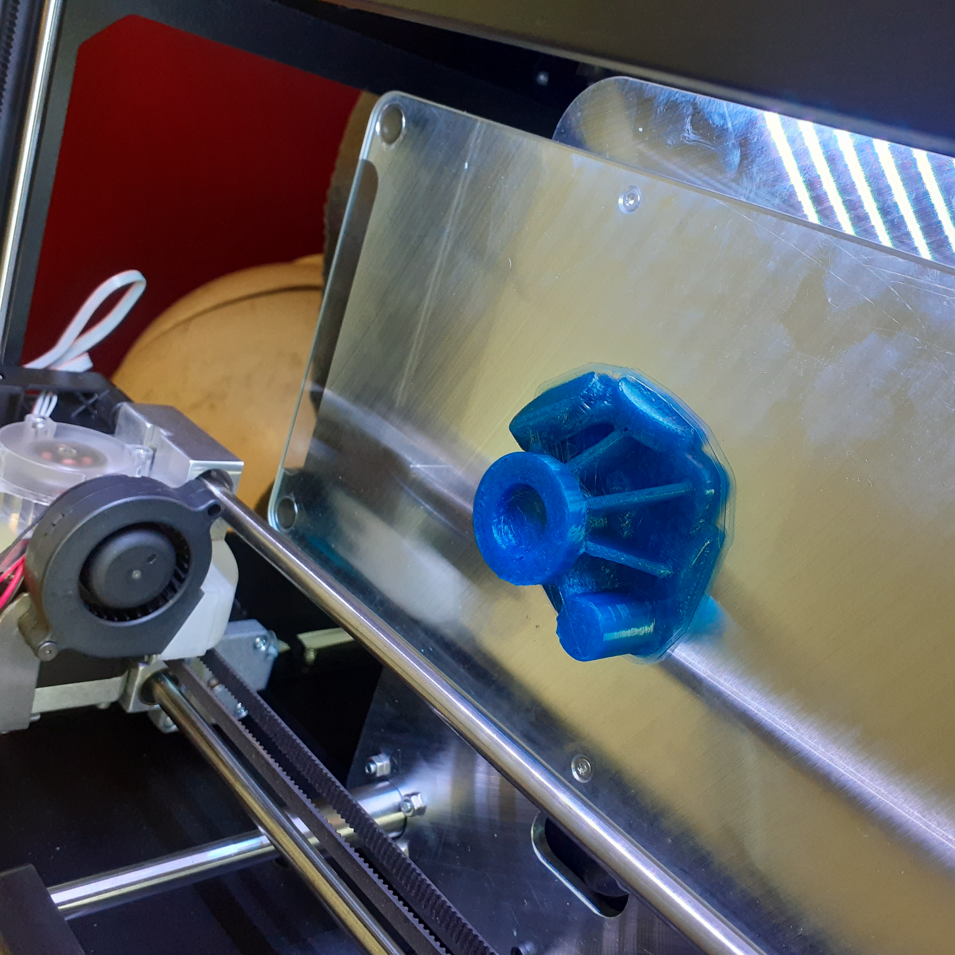 The plan is to investment cast these parts with 3D printed wax patterns. To do this on somewhat of a reasonable budget, some modifications were made to my already highly modified Makerbot Replicator 2 printer to allow it to successfully print using actual wax filament made by machinablewax.com. This 1.75mm filament is intended to be used directly in the investment cast process with no special burn-out cycles and an ash free result. To get this to print a Heated Build Plate was necessary. There’s no sense mounting a 90C component on top of a plastic part so an all-metal Z axis was also installed with linear ball bearings as guides. These parts were sourced from IDE 3D and installed and worked smoothly.