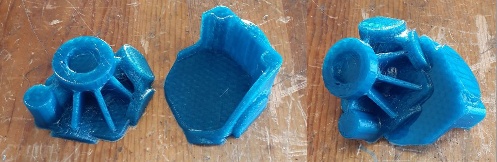 Since any pinholes in the wax will result in a failed casting from investment inclusions, it is important to have clean parts that require little rework. A fix is available from the world of FDM printing, and that is to have geometry that requires minimal supports. In this case, that is as simple as slicing the part in half along a convenient plane. This requires the parts are later melted together, but that is a simpler task than finding tiny pinholes in recessed support areas.