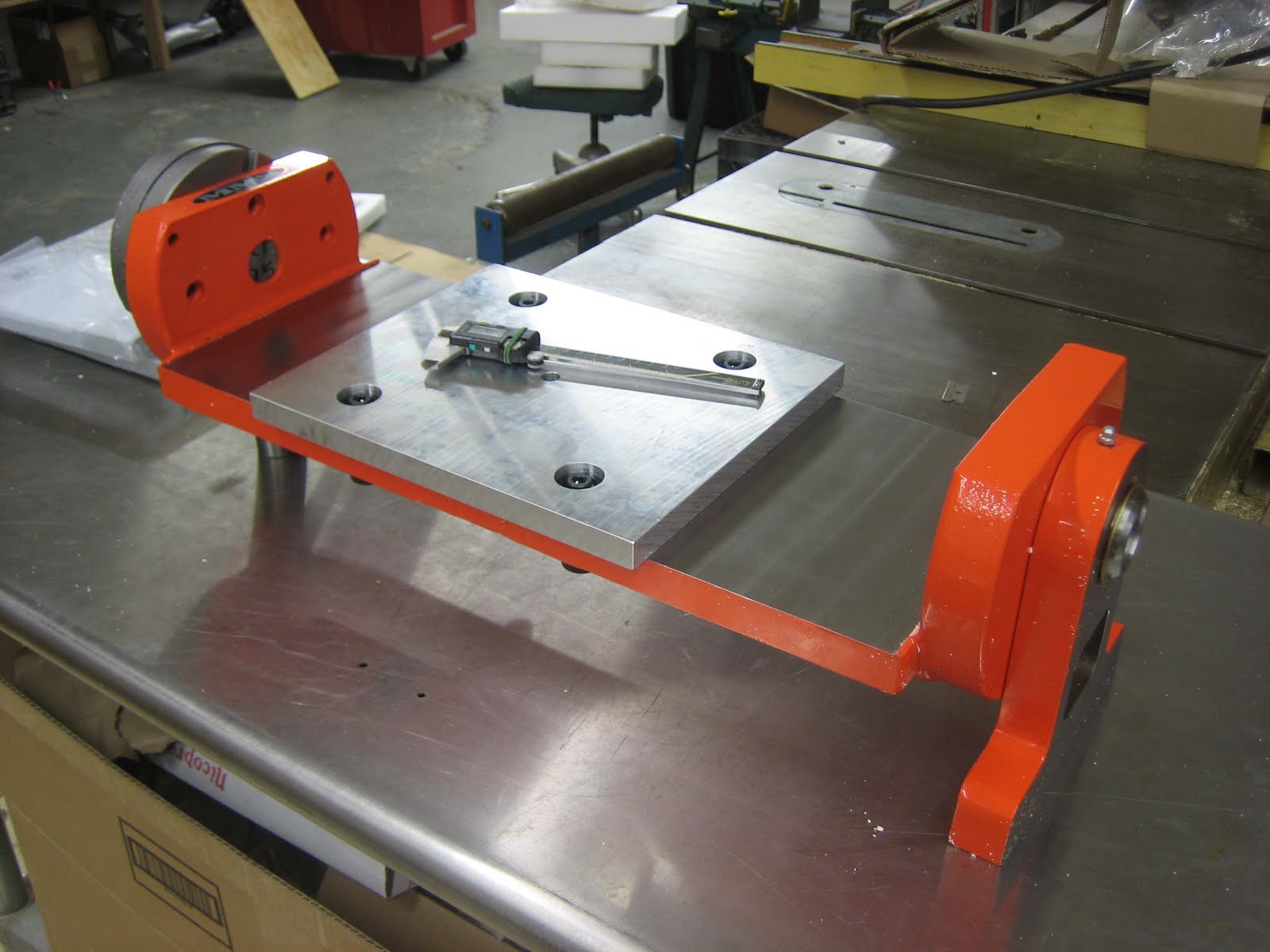 Today the trunnion table for our 4 axis machining center came in. It is a custom design from Martin Manufacturing Services and is a beautiful piece of work. It will be used by us for accurately and quickly machining many parts, most importantly the crankcases, but also some suspension castings and the swingarm for post-heat treat machining.