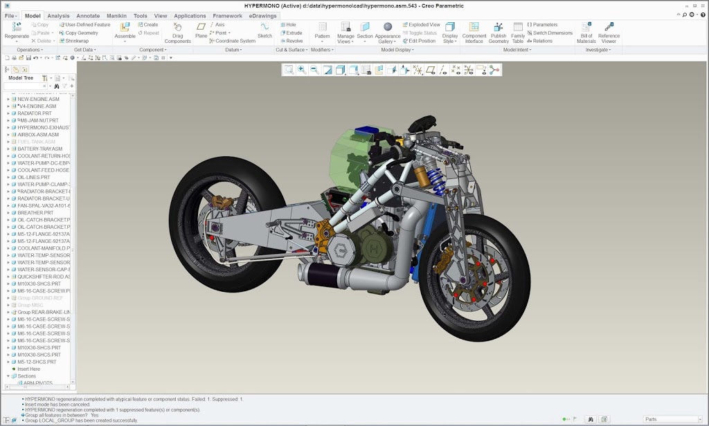 Really good progress has been made in all areas, especially in having the engine nearly ready for CAM programming. I am putting a lot of thought into making discrete sub-assemblies and having the bike both easy to assemble and easy to work on at the track. The bike is very dense and packaging everything that is needed is becoming a greater and greater challenge but thankfully not much is left to add. Detail areas like battery tray, ECU, sensor, relay, and electrical components mounting have all been either resolved or a definite path to resolution has been seen.
